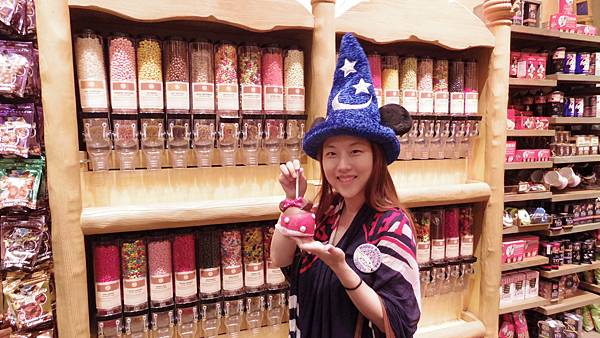 然後畢竟這是我的生日,買了中間米妮造型的焦糖蘋果當蛋糕